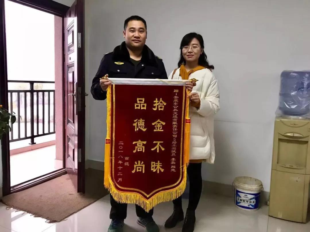 據(jù)失主吉某介紹,她是在12月18日早上的7點(diǎn)50分左右,騎摩托車途徑果園路與育才西路十字路口處,不慎將手提包遺失在馬路上。發(fā)現(xiàn)包丟失之后焦急萬(wàn)分,隨即原路返回尋找,并四處打聽(tīng)是否有人拾到手提包,尋找了幾天都沒(méi)有線索,正當(dāng)她心灰意冷的時(shí)候,接到了李師傅的電話。兩人確認(rèn)后,當(dāng)天下午,失主吉某來(lái)到安康市公交公司領(lǐng)取自己遺失的手提包。并將一面印有“拾金不昧品德高尚”的錦旗和一封感謝信送到公交公司車隊(duì)辦公室。